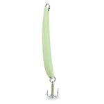 Bleifreier Pilker. Die Form des Körpers verursacht beim Abtauchen starke Druckwellen, die den Fisch zum Angriff reizen. Er ist mit einem Drillingshaken ausgestattet.Eigenschaften:
