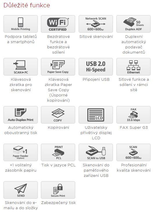 Díky možnosti ovládat tisk a skenování pomocí široké řady zařízení osvobodíte své podnikání. Bohatá nabídka funkcí, jako například Google Cloud Print či Apple AirPrint, umožňuje uživatelům připojit se k tiskárně z celé řady počítačů nebo mobilních zařízení.