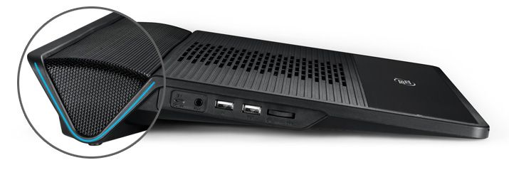 Dieses Modell ist nicht nur eine gewöhnliche Laptop-Kühlung, sondern verfügt über ein integriertes 2.1-Audiosystem und ist die perfekte Kombination aus Reiselautsprechern und Kühlbox. Diejenigen, die hochwertige Musik oder ein stärkeres Audioerlebnis bei Spielen und Filmen mögen, werden es definitiv zu schätzen wissen.