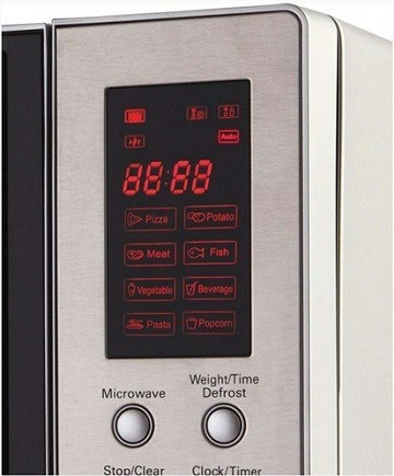 Das Gerät kann auf 5 Leistungsstufen eingestellt werden. In den Voreinstellungen finden Sie 8voreingestellte Automatikprogramme, die zur Übersicht auf dem Hauptdisplay angezeigt werden. Zur Auswahl stehen Pizza, Kartoffel, Fleisch, Fisch, Gemüse, Getränke, Pasta und Popcorn. Das Modell verfügt außerdem über eine einstellbare Abtauung je nach Gewicht der Lebensmittel. Die Bedienelemente selbst sind sehr einfach zu bedienen. Der Hauptdrehknopf ist für den normalen Betrieb ausreichend. Zum Einstellen anderer Funktionen, wie z. B. des Timers, verwenden Sie eine der oberen Tasten. Für den Fall der Fälle ist der Backofen mit einer Kindersicherung ausgestattet.