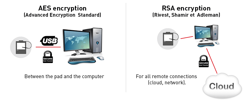 Die Datenübertragung zwischen dem Unterschriftenpad und Ihrem Computer ist durch AES-Verschlüsselung gesichert.