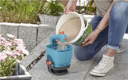 Der GARDENA Handstreuer M eignet sich optimal zum Ausbringen von Dünger und Streusalz auf kleineren Flächen. Die Streugutmenge wird direkt am ergonomisch geformten Griff eingestellt. Die Bedienung des Handstreuers erfolgt über eine Handkurbel. Die frei drehbare Streuscheibe sorgt für optimale Funktionalität und gleichmäßige Verteilung des Streugutes ohne ungewolltes Streuen oder Verstopfen. Der Trichter ist aus hochwertiger Paste gefertigt und daher äußerst langlebig.
