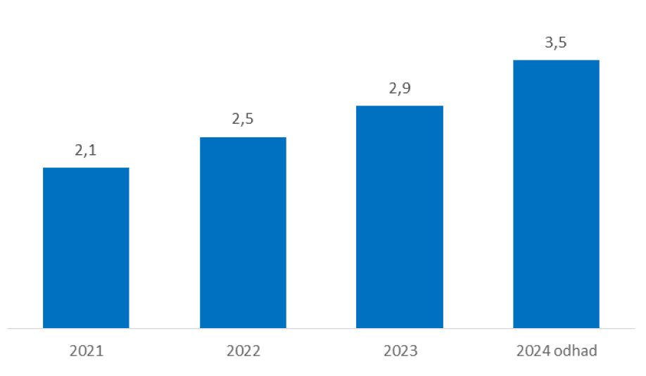 Umsatzentwicklung von Mironet.cz (Mrd. CZK)