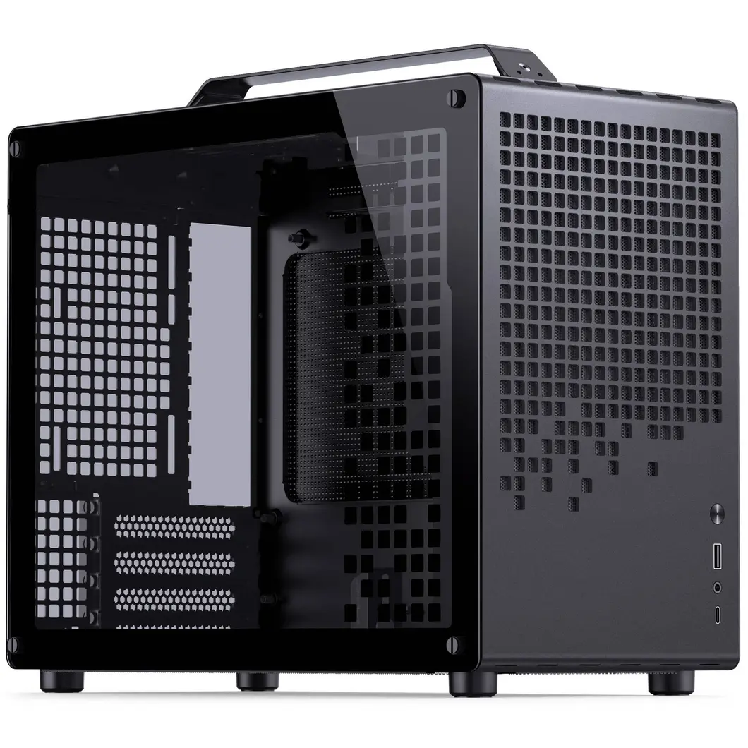 Das Jonsplus Z20 in Schwarz ist ein schlankes und robustes Mini-Tower-Gehäuse mit einem hochwertigen Metallgehäuse und einem praktischen Tragegriff für einfachen Transport. Es wurde für Micro-ATX- und Mini-ITX-Motherboards entwickelt und bietet einen überraschend geräumigen Innenraum mit der Möglichkeit, eine bis zu 363 mm lange Grafikkarte und einen bis zu 164 mm hohen CPU-Kühler zu installieren.