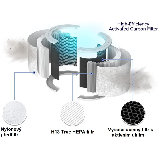 Die zweite Schicht ist der HEPA H13 Filter. Damit hebt sich der Levoit von der Konkurrenz ab, denn der HEPA H13-Filter ist wesentlich hochwertiger und zuverlässiger als der üblicherweise verwendete HEPA H11. Hier werden Feinstaubpartikel, Schimmel, Bakterien, Pollen, Rauchpartikel, Staubmilben und Haare herausgefiltert.