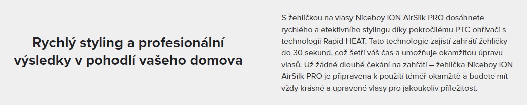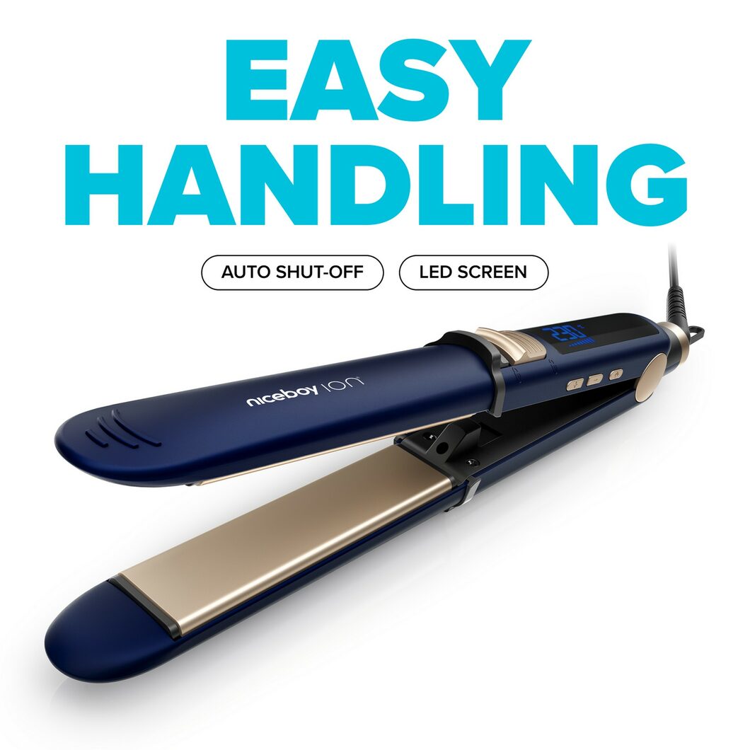 Mit dem Niceboy ION AirSilk PRO Haarglätter erzielen Sie professionelle Ergebnisse direkt bei Ihnen zu Hause. Sein schlankes Design und seine fortschrittlichen Funktionen machen ihn zur idealen Wahl für den täglichen Gebrauch und besondere Anlässe. Setzen Sie auf Qualität und Komfort mit dem Niceboy ION AirSilk PRO und genießen Sie jeden Tag schönes, gesundes und perfekt gestyltes Haar.