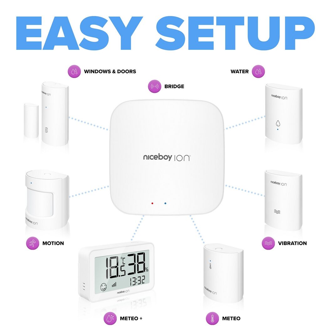 Einfache Verbindung im HandumdrehenDie Installation des Niceboy ION ORBIS Meteo+ Sensors ist ein Kinderspiel. Platzieren Sie den Sensor einfach an dem ausgewählten Ort, an dem Sie Temperatur und Luftfeuchtigkeit messen möchten. Sie benötigen dann eine Niceboy ION ORBIS Bridge Zentraleinheit, um den Sensor mit Ihrem Smart Home zu verbinden. Und die Niceboy ION Mobile App hilft Ihnen beim gesamten Verbindungsprozess, wo Sie den aktuellen Status überprüfen, Einstellungen vornehmen und den Sensor mit anderen intelligenten Geräten in intelligenten Szenarien verbinden können. |