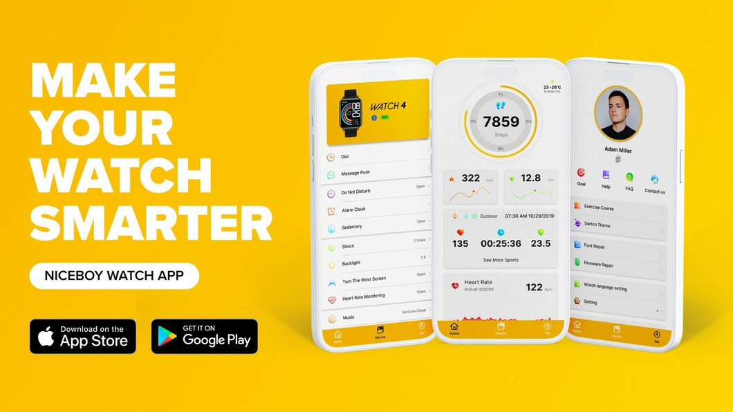 Mit der mobilen AppNiceboy WATCH können Sie alle Vorteile Ihrer Uhr nutzen. Behalten Sie den Überblick über Ihre Aktivitäten und Gesundheitsstatistiken, setzen Sie sich persönliche Ziele und überwachen Sie Ihre Fortschritte effizient. Mit der App können Sie die erweiterten Funktionen Ihrer Uhr perfekt an Ihre Bedürfnisse anpassen . Außerdem können Sie sich auf die Sprachunterstützung verlassen , da die Uhr und die App Ihre Sprache sprechen (einschließlich Tschechisch und Slowakisch). |