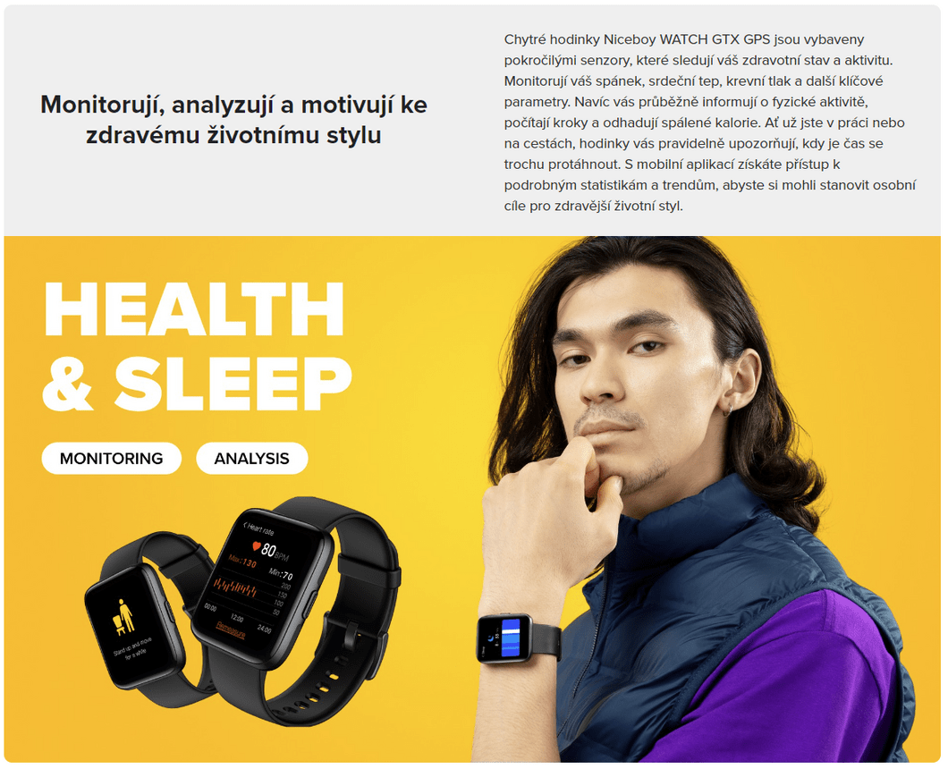 Niceboy WATCH GTX GPS ist eine fortschrittliche Smartwatch mit einem außergewöhnlichen AMOLED-Display, das ein klares und detailliertes Bild liefert. Dank des integrierten GPS-Moduls kann die Uhr bei sportlichen Aktivitäten Entfernung, Geschwindigkeit und Route genau verfolgen. Mit der Uhr haben Sie alle Informationen über Ihre Gesundheit, Leistung und Neuigkeiten direkt an Ihrem Handgelenk. Die Niceboy WATCH GTX GPS ist somit ein großartiger Partner für einen aktiven Lebensstil.