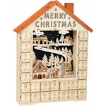 Eine weihnachtliche Arche mit vielen Details, sie ist aus Holz und definitiv nicht nur zur Dekoration. Sie wird Ihnen das Warten auf den Heiligen Abend verkürzen! Mit Schnee bedeckte Häuser und Nadelbäume sowie Skifahrer bringen die richtige Atmosphäre in Ihr Zuhause. Sie können die Kalenderfenster mit Leckereien oder Geschenken füllen. Der Adventskalender hat eine sanfte Beleuchtung, so dass Sie ihn auch nach Einbruch der Dunkelheit als Dekoration verwenden können. Die LED-Lichter werden mit zwei AA-Batterien betrieben, die Sie mit dem kleinen Schalter jederzeit ein- und ausschalten können. Die Batterien sind nicht im Lieferumfang enthalten.