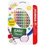 STABILO EASYcolors. Ergonomische Dreikant-Buntstifte für Vorschul- und Schulkinder ab 5 Jahren. Die ersten ergonomischen Buntstifte speziell für Links- und Rechtshänder. Die dreieckige Form und die rutschfesten Griffflächen sorgen für eine entspannte Handhaltung. Das gelbe bzw. rote Ende der Kreide kennzeichnet die linke bzw. rechte Variante. Leuchtende Farben in Holz aus nachhaltiger Forstwirtschaft. Die Buntstifte werden aus PEFC®-zertifiziertem Holz (PEFC/04-31-1728) hergestellt und sind mit einem Namensschild versehen.Technische Parameter