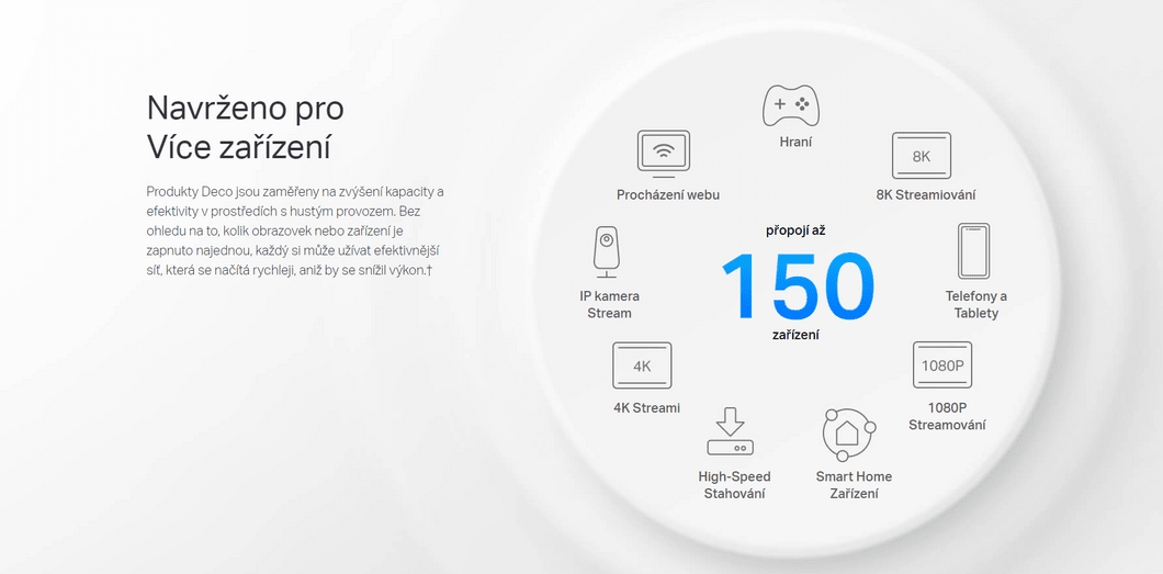 TP-Link Mesh bedeutet, dass Deco-Geräte zusammenarbeiten, um ein einheitliches Netzwerk zu schaffen. Ihr Telefon oder Tablet verbindet sich automatisch mit dem schnellsten Deco, wenn Sie sich in Ihrem Haus bewegen, und schafft so ein wirklich nahtloses Wi-Fi-Erlebnis.‡