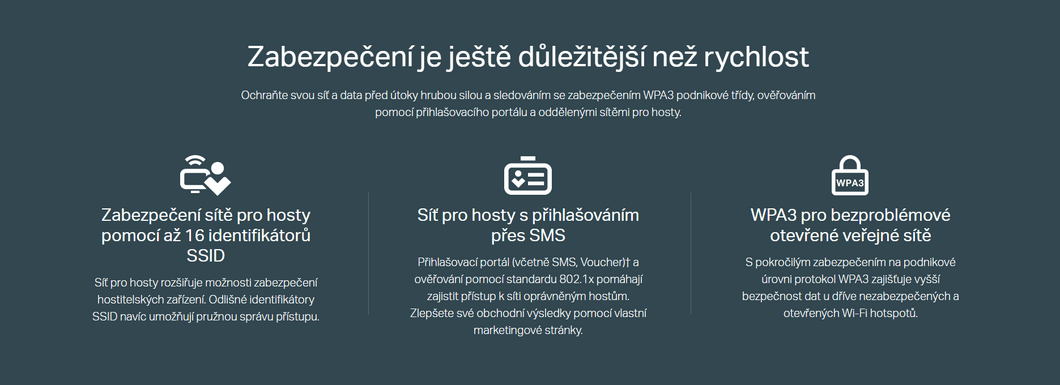 Der TP-LINK EAP615-WALL verfügt über eine Wi-Fi-Schnittstelle mit Unterstützung für 802.11a/b/g/n/ac/ax, die es ihm ermöglicht, die Frequenzbänder des 2.4 + 5 GHz mit halsbrecherischer Geschwindigkeit und hoher Leistung abzudecken. Es handelt sich also um einen so genannten Dual-Band-Betrieb, bei dem das Gerät in beiden Frequenzbändern gleichzeitig arbeiten kann, ohne dass sich die Bänder gegenseitig einschränken. Es ist der schnellste 802.11ax-Standard, der auf 5 GHz läuft und dort sehr hohe Übertragungsgeschwindigkeiten von bis zu 4,8 Gbit/s bieten kann. Auch das 2,4-GHz-Band kommt nicht zu kurz und bietet maximale Übertragungsgeschwindigkeiten von bis zu 1,1 Gbit/s. Die genaue Geschwindigkeit hängt von der Anzahl und dem Typ der Funkantennen ab. Und mit Übertragungsgeschwindigkeiten von bis zu 10 Gbit/s können wir uns auf wesentlich schnellere Geschwindigkeiten freuen, als sie die bisherigen Technologien bieten.