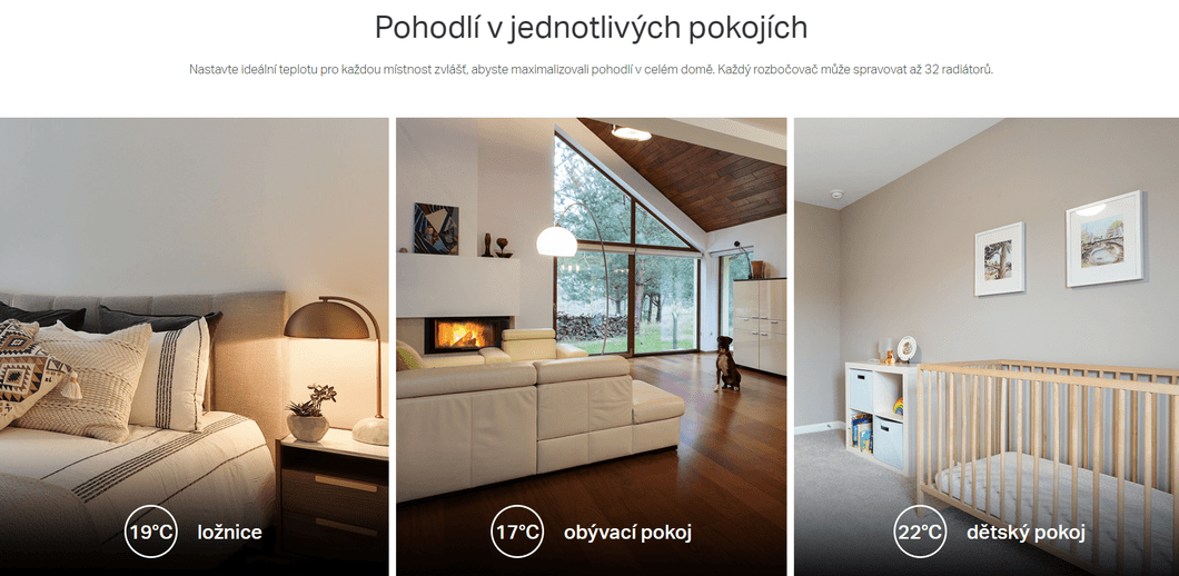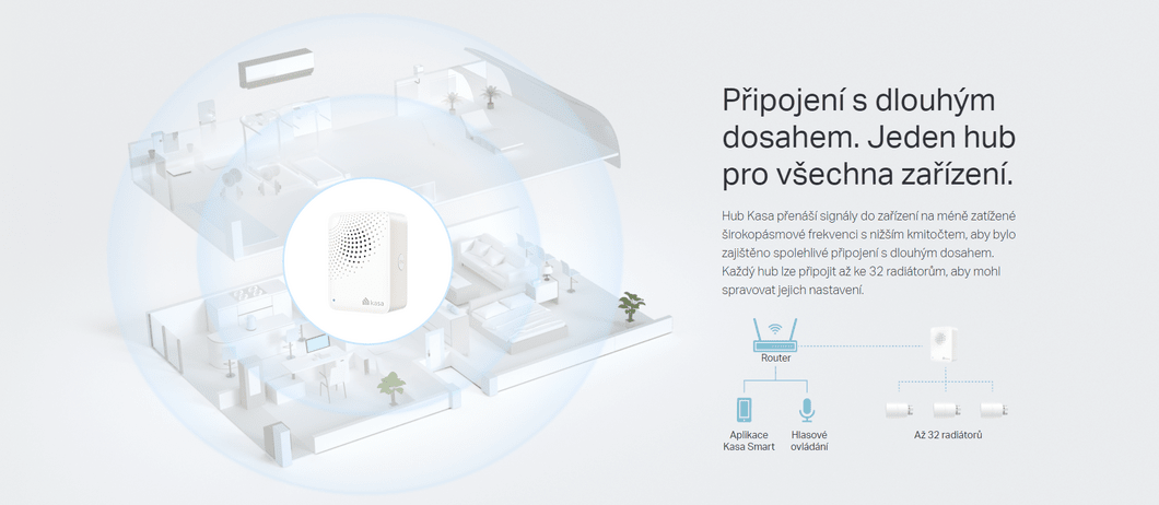 - Bis zu 32 Heizkörper - jeder Hub kann mit bis zu 32 Heizkörpern verbunden werden, um deren Einstellungen zu verwalten.