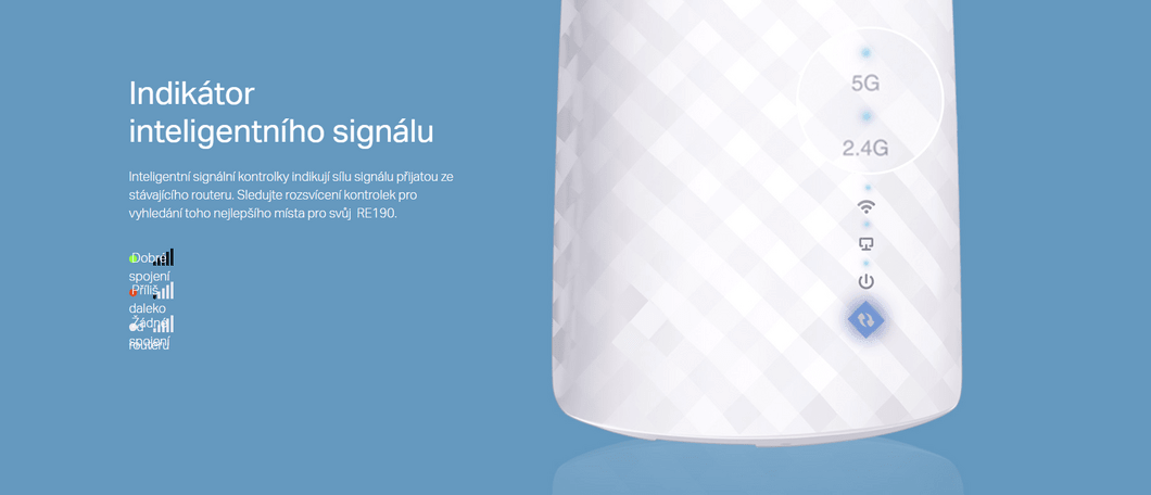 Die Übertragungsgeschwindigkeit eines drahtlosen Netzwerks hängt vom Standard 802.11a/b/g/n/ac und dem verwendeten Frequenzband 2.4 + 5 GHz ab. Die Wi-Fi-Übertragungsgeschwindigkeit des Geräts TP-LINK RE190 beträgt sehr gute 300 Mbit/s im am häufigsten verwendeten 2,4-GHz-Band, und im schnellen 5-GHz-Band sind es hervorragende 433 Mbit/s.