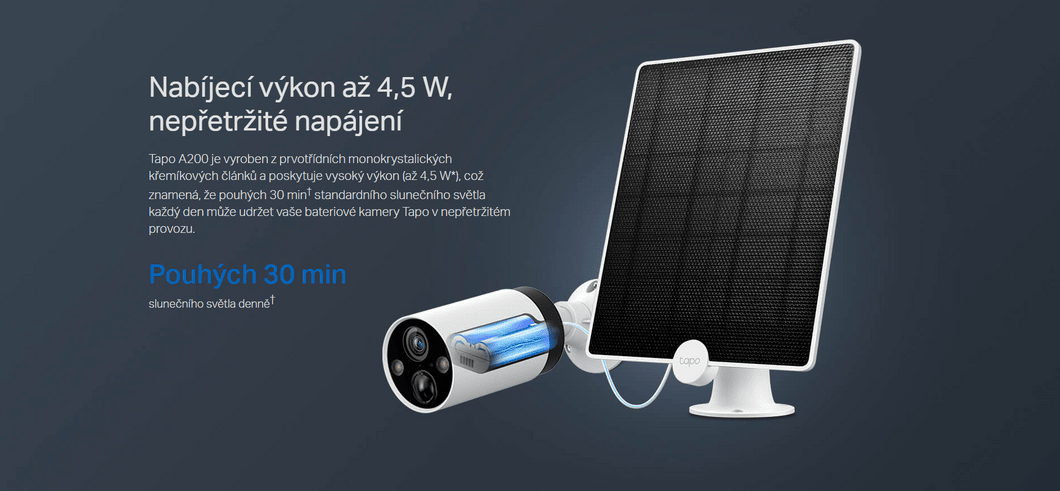 - Ladeleistung bis zu 4,5 W - Aus hochwertigen monokristallinen Siliziumzellenhergestellt, fängt die Tapo A200 reichlich Sonnenenergie ein und liefert effizient kontinuierlichen Strom.