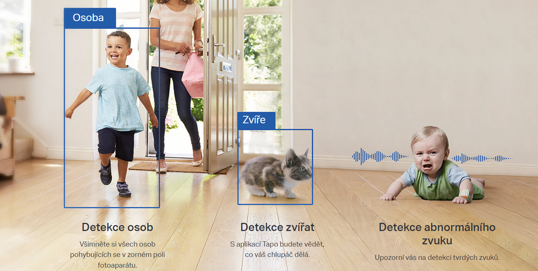 Intelligente KI identifiziert Personen, Haustiere und Fahrzeuge, erkennt Babyschreie und andere Geräusche und alarmiert den Benutzer bei Bedarf.