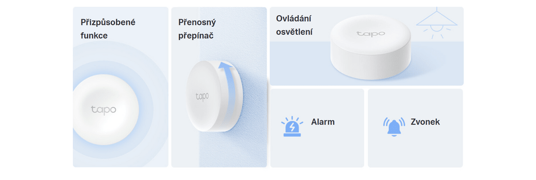 - Smart Button -Steuerung und Einrichtung verschiedener Lichter, Elektronik und anderer intelligenter Tapo-Geräte mit nur einem Tastendruck.