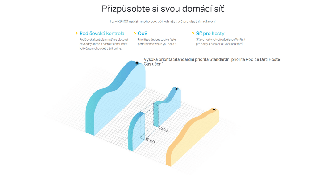 Kindersicherung - haben Sie Kinder und möchten den Zugang zu ungeeigneten Websites verhindern? In den Einstellungen von TP-LINK TL-MR6400 ist das kein Problem. Sie können festlegen, welche Websites zu welcher Tageszeit besucht werden können - legen Sie einfach eine Sperrstunde fest.