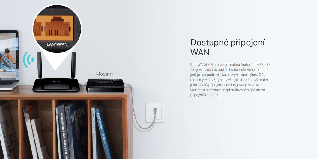 Möchten Sie Ihr TP-LINK TL-MR6400 Gerät über ein mobiles Breitbandnetz mit 4G LTE Technologie mit dem Internet verbinden? Einfacher geht es nicht, denn TP-LINK TL-MR6400 verfügt bereits über ein eingebautes 4G LTE-Modem. Alles, was Sie tun müssen, ist eine Daten-SIM-Karte Ihres Betreibers einzulegen. Das LTE-Modem ist auch abwärtskompatibel mit 3G-Netzen, sodass Sie sich darauf verlassen können, fast überall ein Signal zu empfangen. Diese Lösung ist nützlich als Backup, wenn die Hauptinternetverbindung ausfällt, oder um die Datenverkehrslast in Gebieten mit niedrigeren Kabelgeschwindigkeiten zu verteilen. Es ist auch die ideale Lösung für Reisen oder für den Internetzugang in der Hütte.
