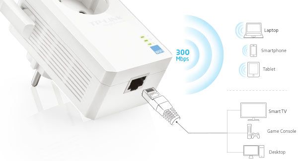 Der TP-LINK TL-WA860RE Signal-Repeater wurde entwickelt, um die Abdeckung zu erweitern und das Signal Ihres bestehenden drahtlosen Netzwerks zu verbessern und "tote Zonen" zu beseitigen. Mit 300Mbit/s drahtloser N-Geschwindigkeit, Range Extender-Taste, Miniatur-Größe und Wandmontage-Design, die Erweiterung Ihres drahtlosen Netzwerks war noch nie so einfach. Darüber hinaus bietet die zusätzliche Steckdose Strom für andere elektrische Geräte. Darüber hinaus kann der Signal-Repeater TL-WA860RE dank des Ethernet-Anschlusses als Wireless-Adapter fungieren und ein kabelgebundenes Gerät in ein drahtloses verwandeln.300 Mbit/s Signal-Repeater