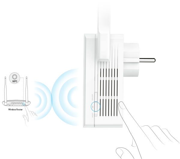Ohne neue Drähte oder Kabel können Benutzer innerhalb der Reichweite des bestehenden drahtlosen Netzwerks die Reichweite des drahtlosen Netzwerks ganz einfach erweitern, indem sie die WPS-Taste an ihrem Router drücken und dann die Range Extender-Taste am Signalverstärker TL-WA860RE drücken oder umgekehrt.