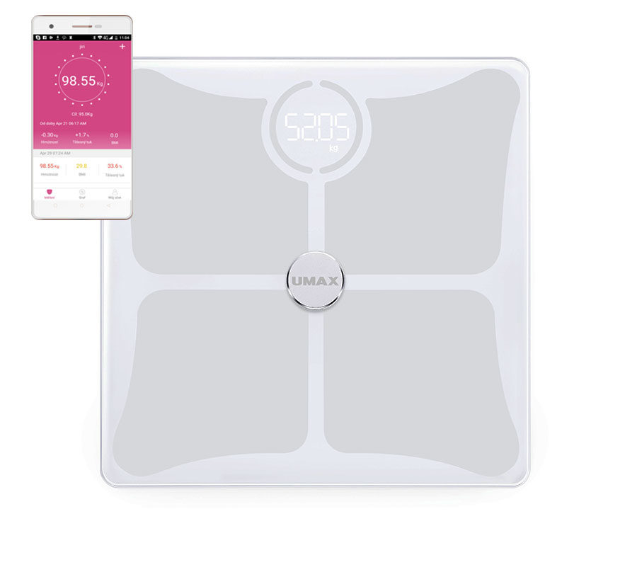 Die UMAX Smart Scale US10C ist eine intelligente Waage der nächsten Generation, die fortschrittliche Technologie nutzt, um das Gewicht und andere Körperparameter zu messen. Die UMAX Smart Scale analysiert die Körperzusammensetzung für bis zu 14 verschiedene Parameter wie Körperfett, Skelettmuskel, viszerales Fett, Wasservolumen, Protein, metabolisches Alter oder BMI und misst das Gewicht durch bioelektrische Impedanzanalyse (BIA). Die Waage ist drahtlos (Bluetooth) mit einer großartigen mobilen App in englischer Sprache verbunden, mit der Sie die Messungen überprüfen können, die Sie benötigen, um die Kontrolle über Ihre Fitness zu übernehmen. Die metallfreie ITO-Technologie, das patentierte Messsystem und die hochwertigen Materialien sorgen für eine lang anhaltende hohe Messgenauigkeit.